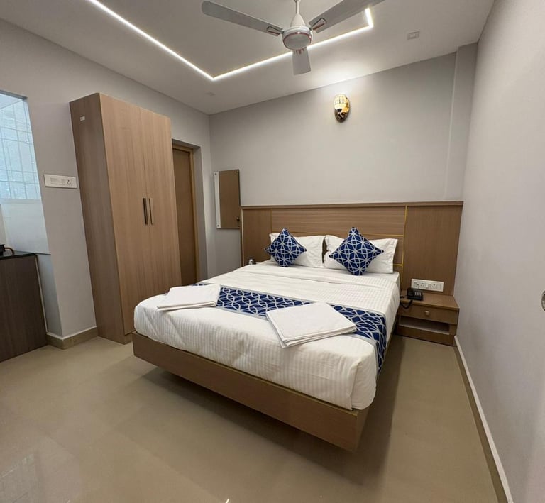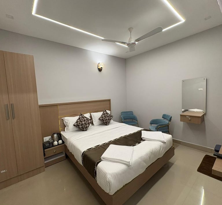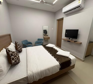 Experience luxury and comfort in our Deluxe Kitchen Double & Trible Room, perfect for relaxation after a day of exploring Chennai's vibrant culture.